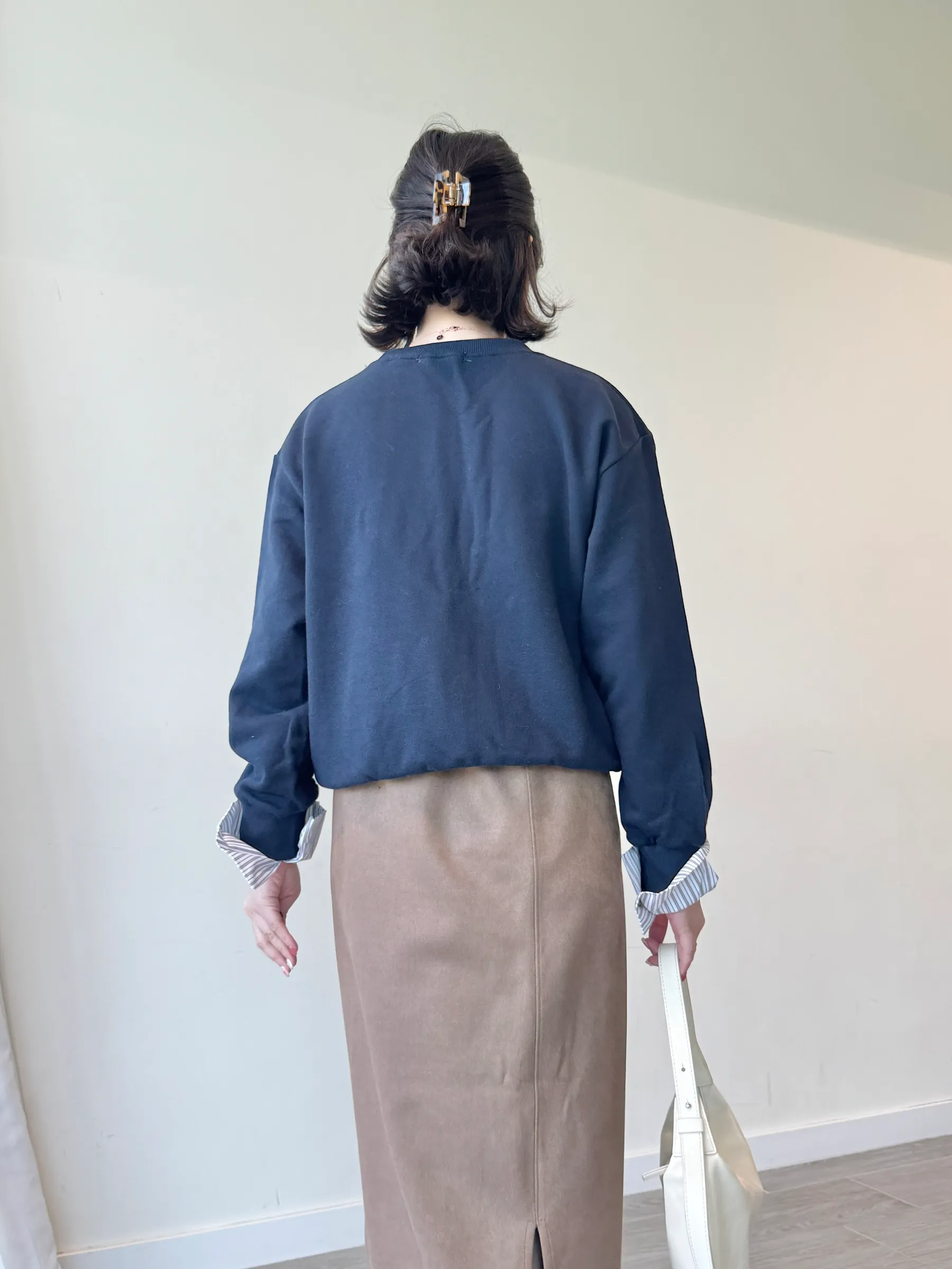 <版型不過大!> layering shirt sweatshirt | navy