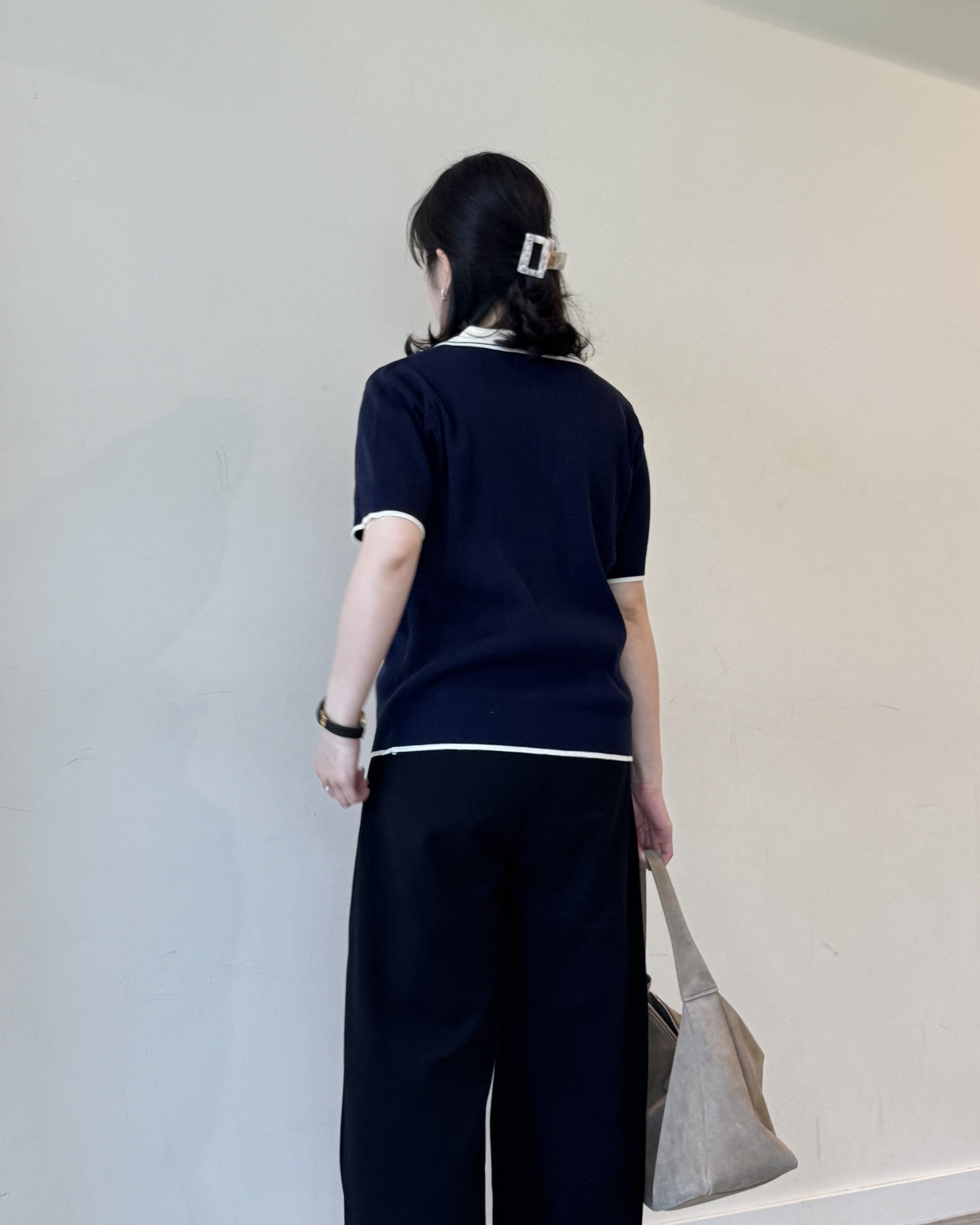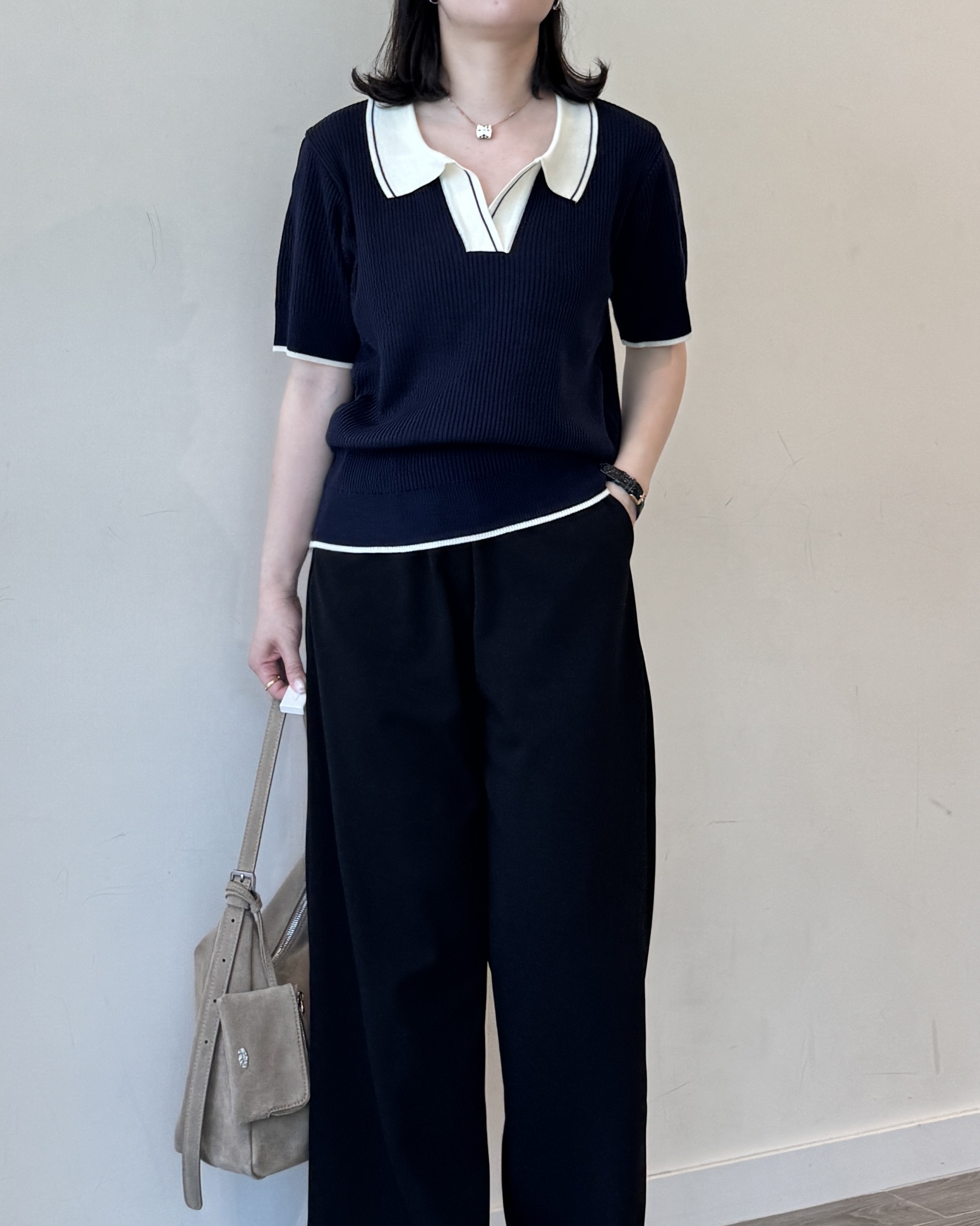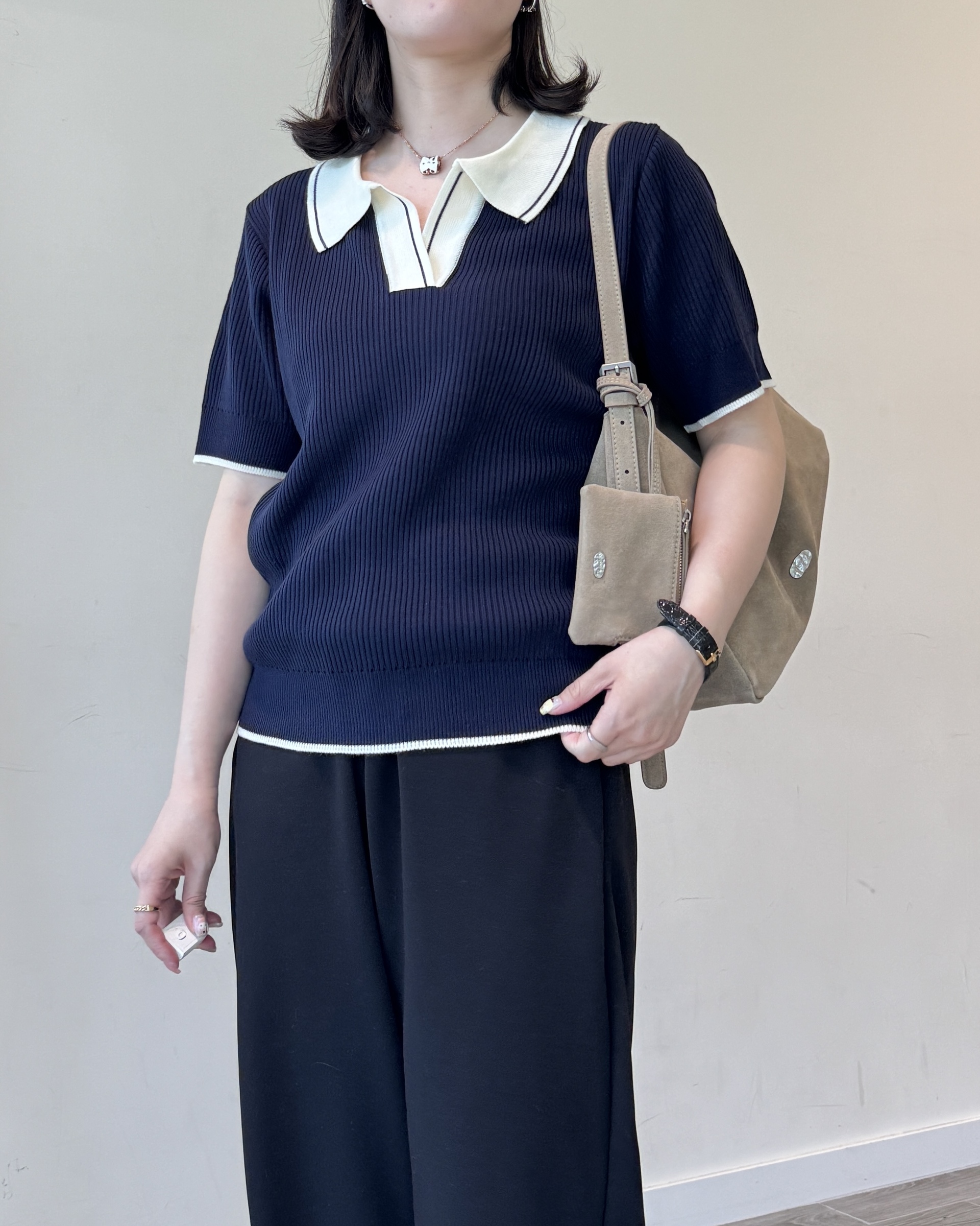 open collar knit | navy