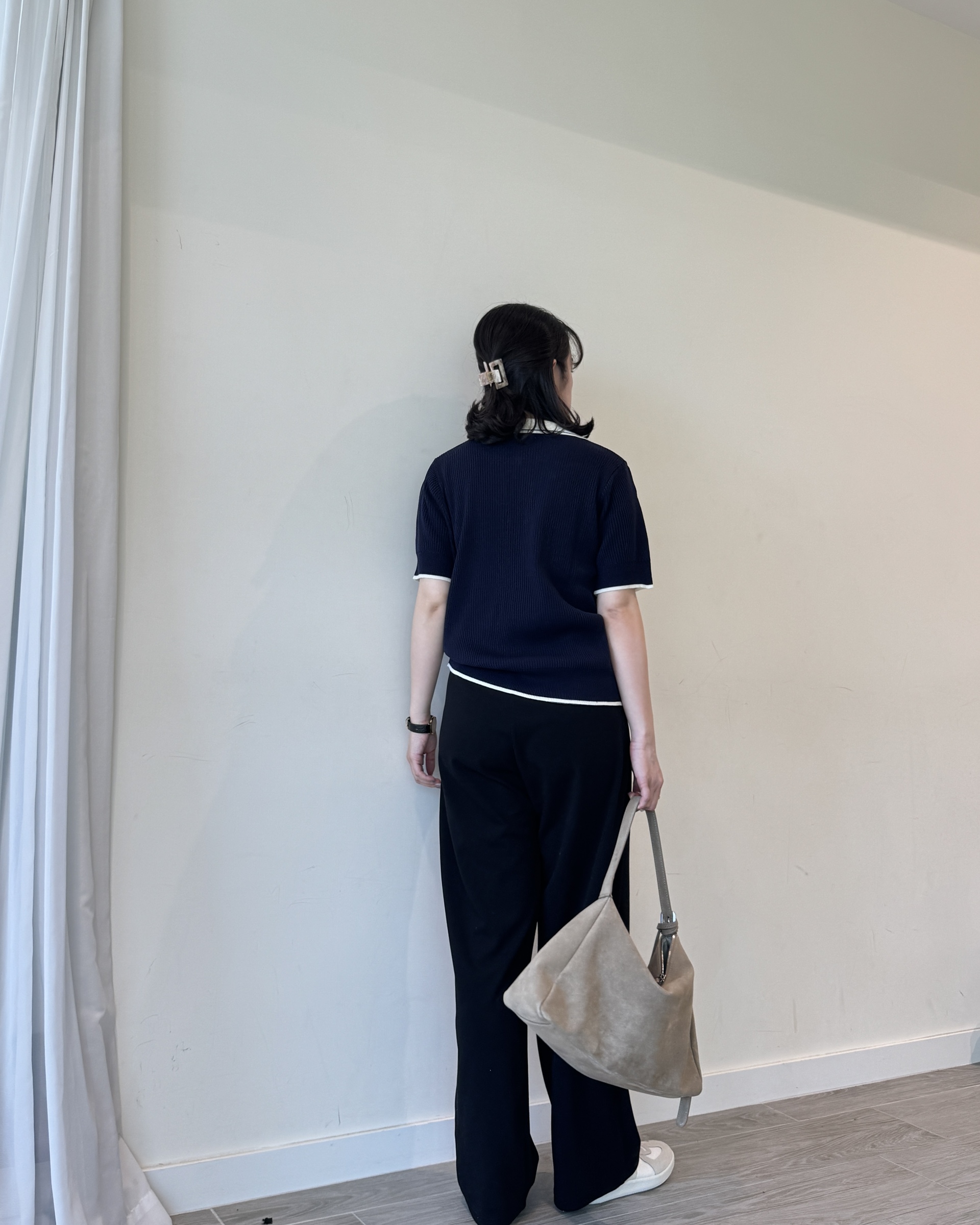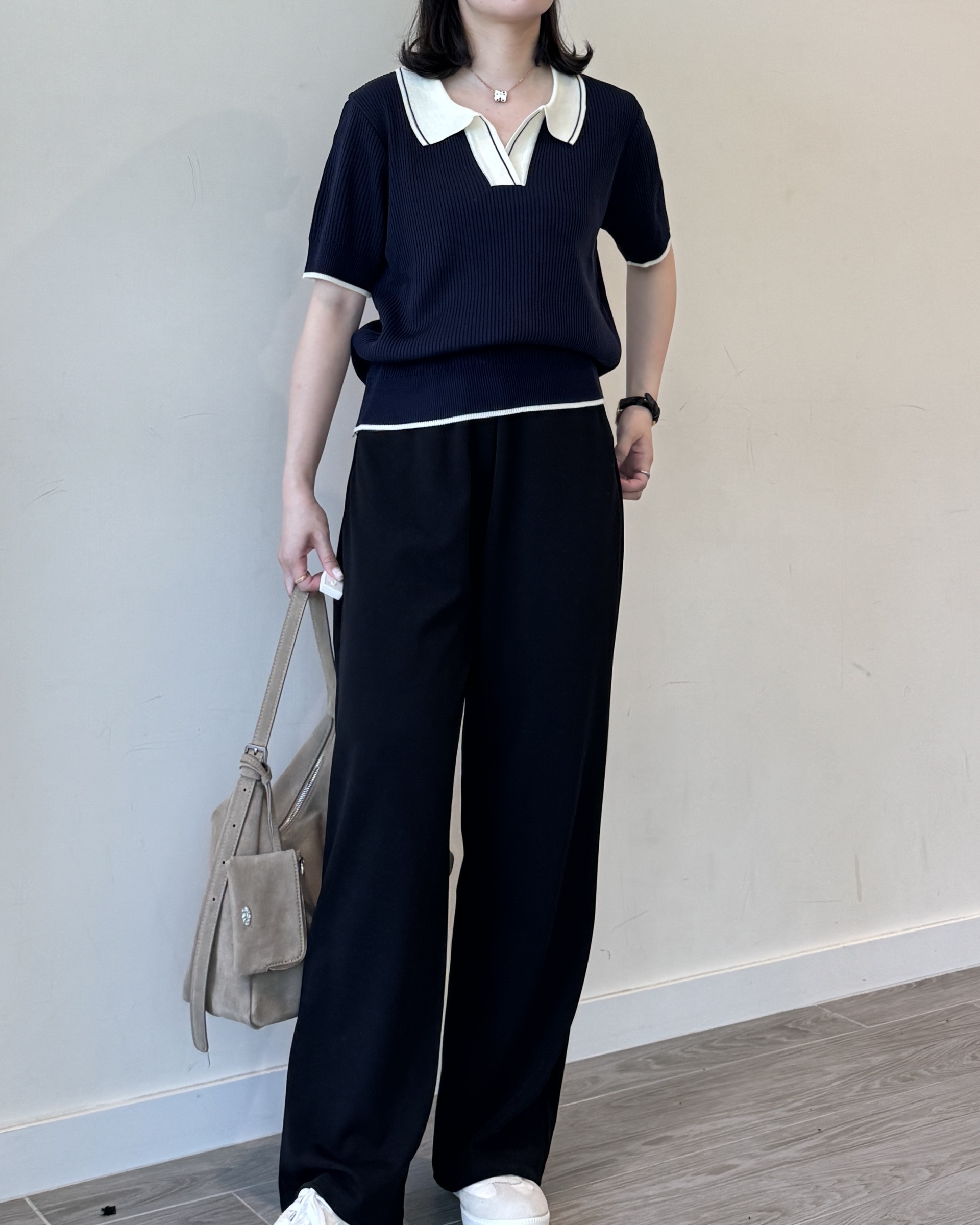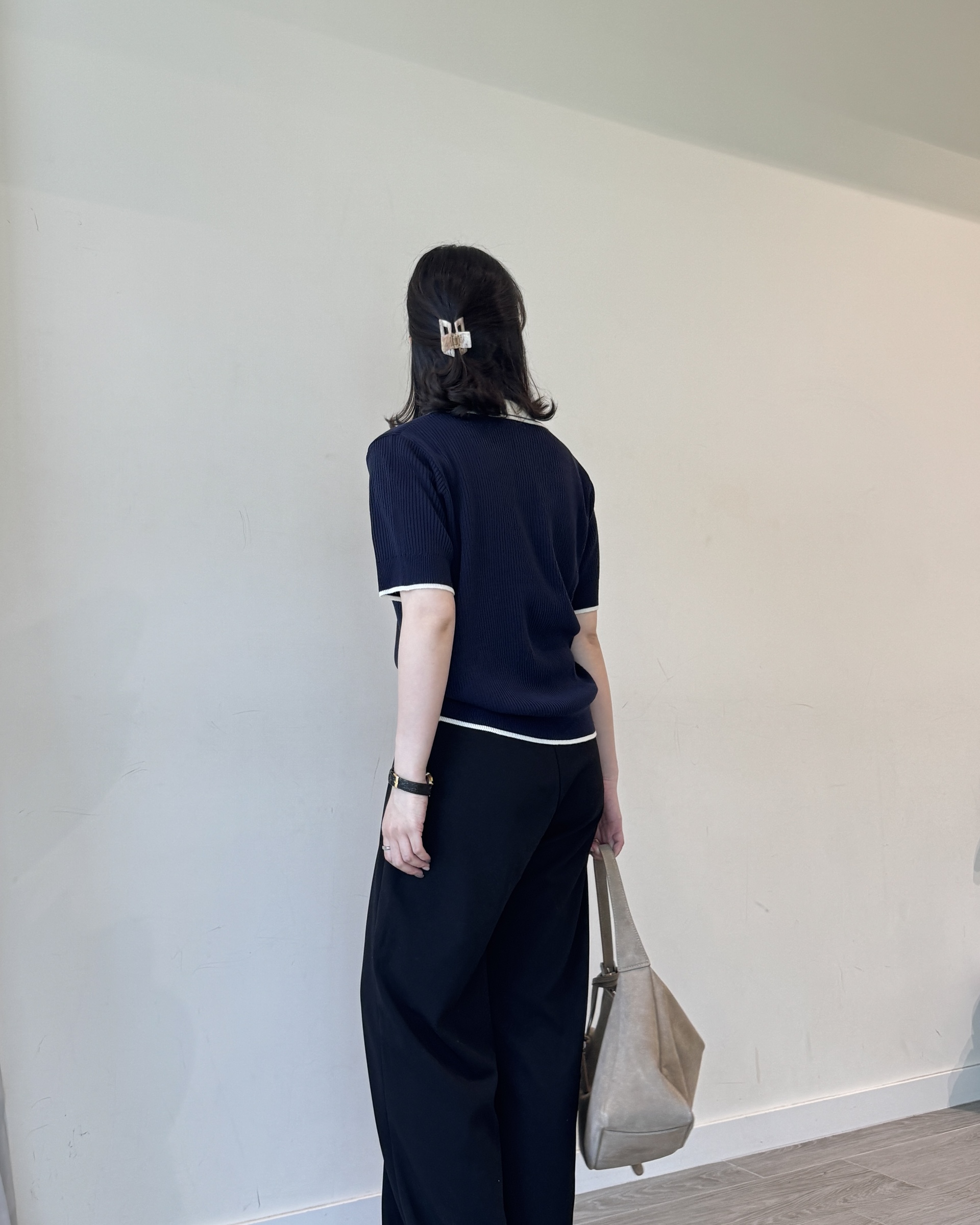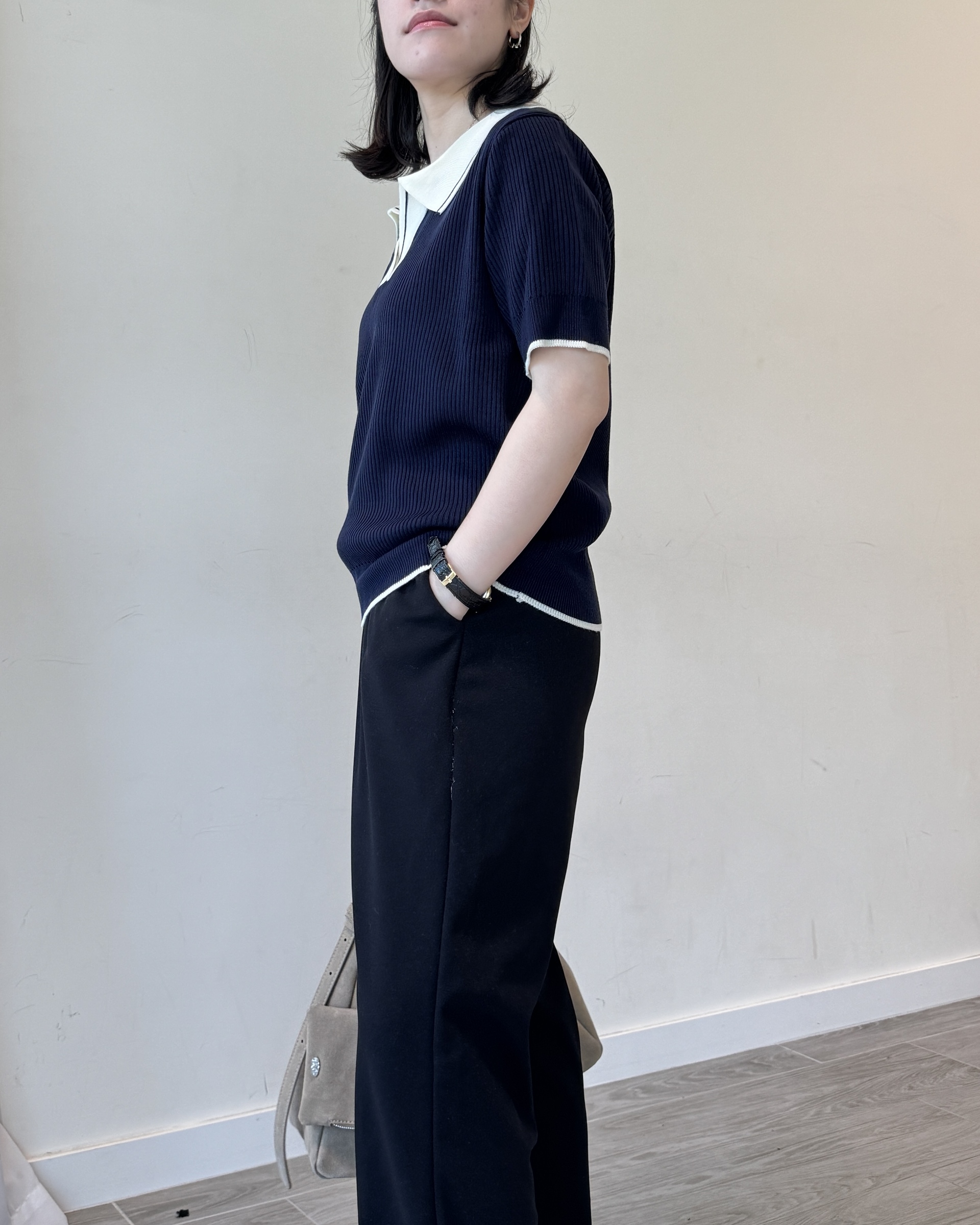 open collar knit | navy