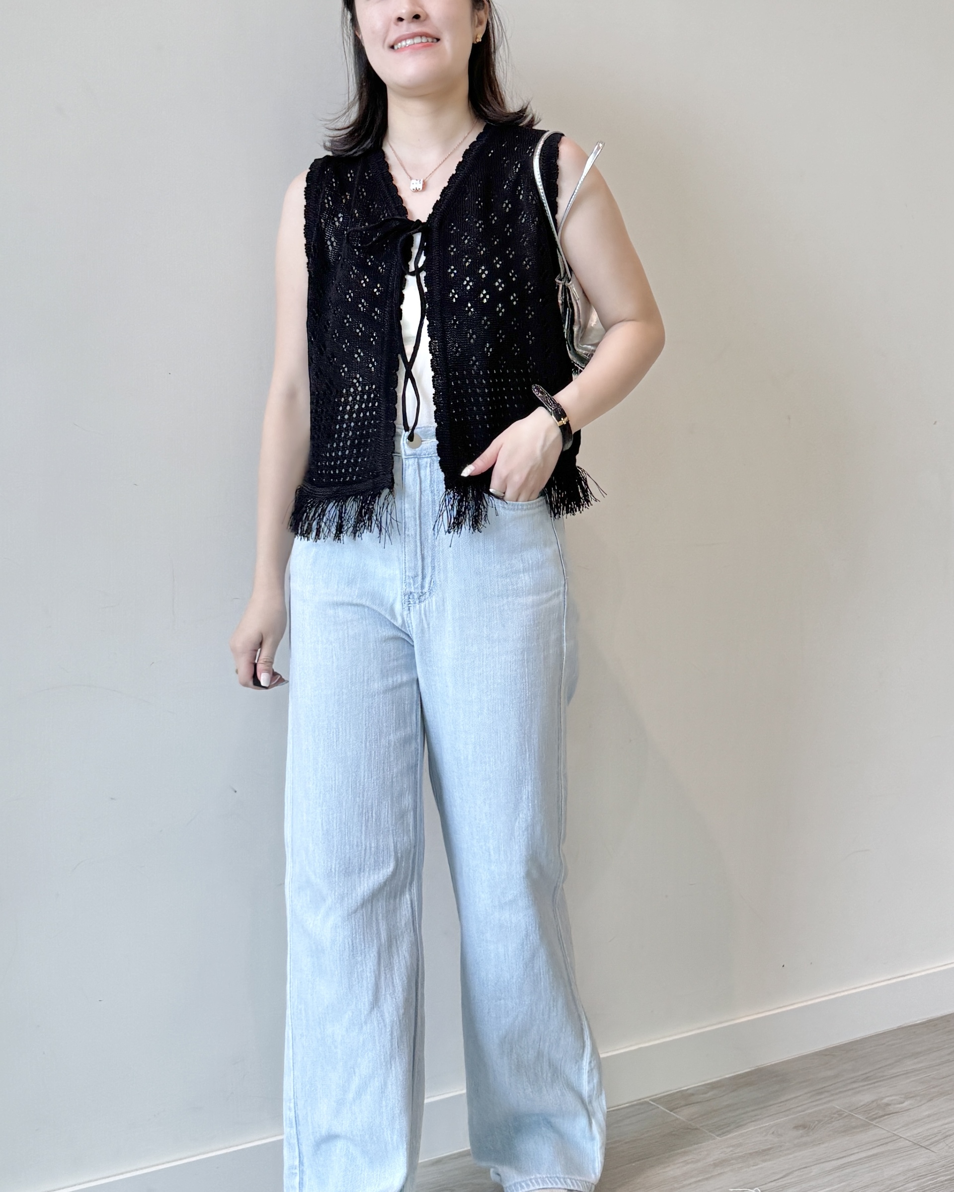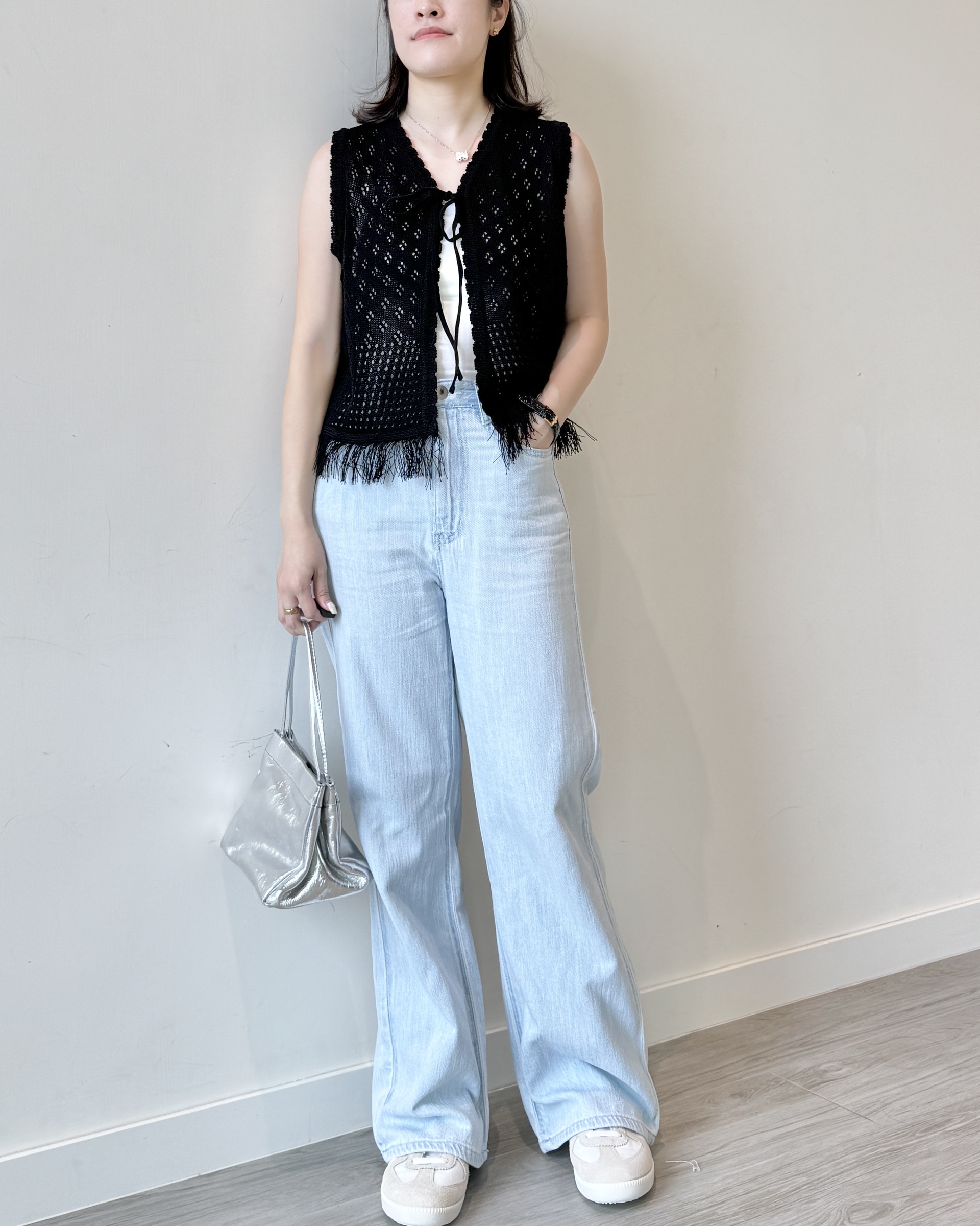 Model 159cm/ 47kg 腰圍: 25" | 臀圍: 34" | 肩寬: 16.5"